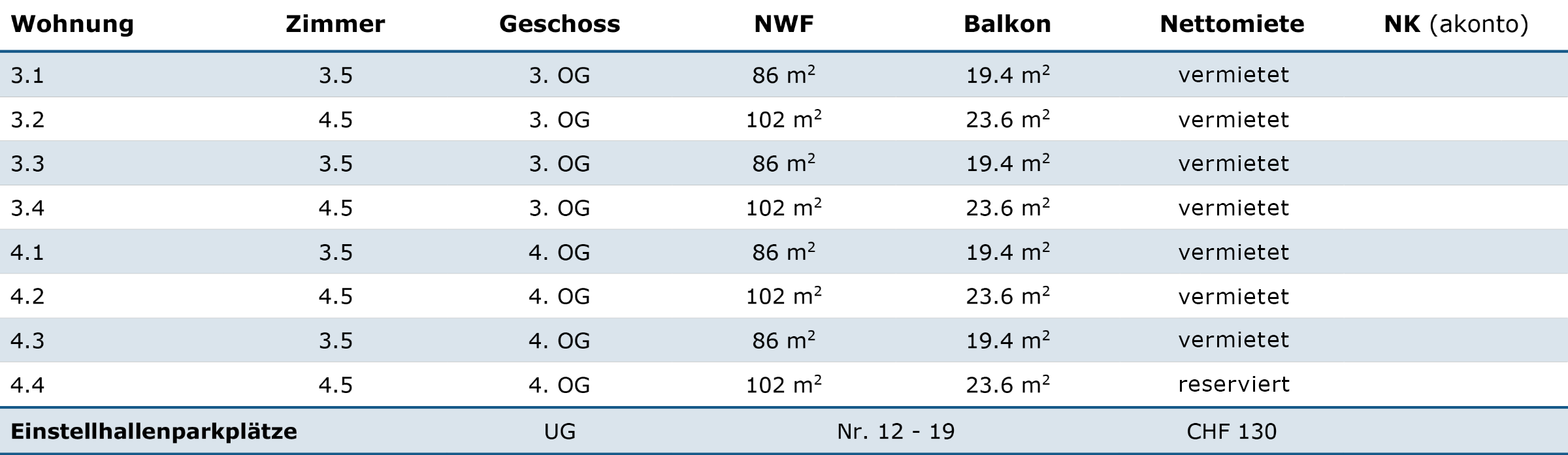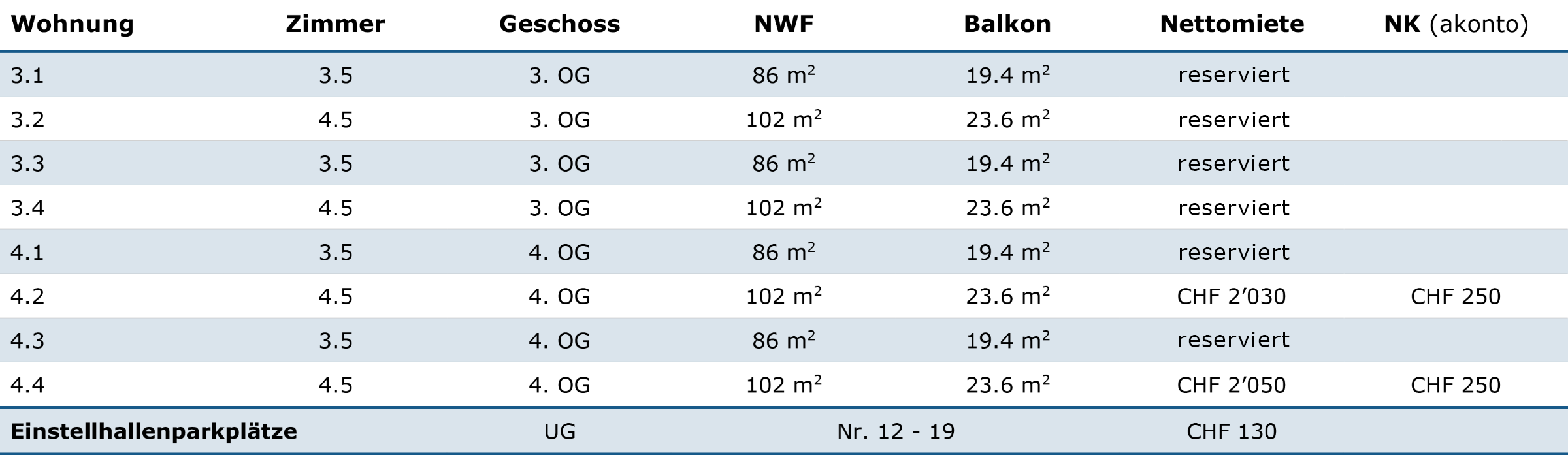 vier 3½- und vier 4½-Zimmer-Wohnungen